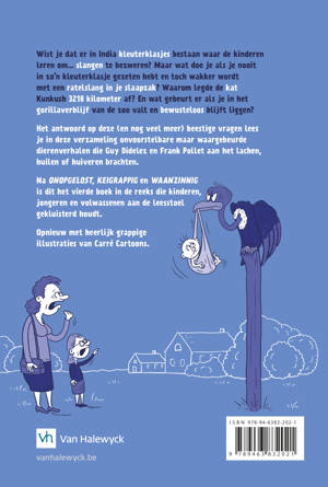 Het antwoord op deze (en nog veel meer) beestige vragen lees je in de verzameling onvoorstelbare maar waargebeurde dierenverhalen die Guy Didelez en Frank Pollet bij elkaar zochten. Na Onopgelost, Keigrappig en Waanzinnig nu al het vierde boek in de reeks die kinderen, jongeren en volwassenen aan de leesstoel gekluisterd houdt. Opnieuw met heerlijk grappige illustraties van Carré Cartoons.