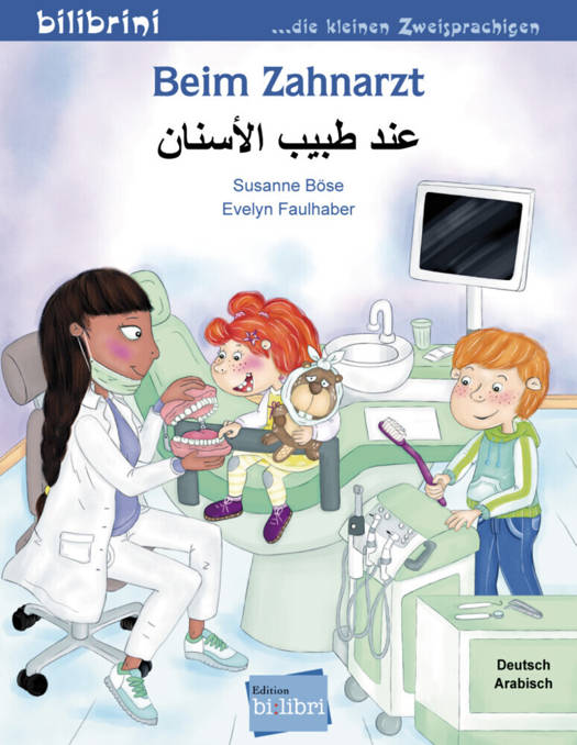Beim Zahnarzt, aus der Reihe bilibrini - die kleinen Zweisprachigen, ist ein zweisprachiges Kinderbuch auf Deutsch und Arabisch für Kinder ab 3 Jahren. Ein Besuch beim Zahnarzt ist spannend! Zoe und ihr Bruder bekommen viele Tipps zur richtigen Zahnpflege. Farbenfrohe Illustrationen laden zum Betrachten ein und eine Wort-Bild-Leiste auf jeder Seite greift wichtige Gegenstände erneut auf und fördert gezielt das Suchen, Finden und Benennen.Das Buch ist in weiteren Sprachfassungen - immer in Kombination mit Deutsch - erhältlich.