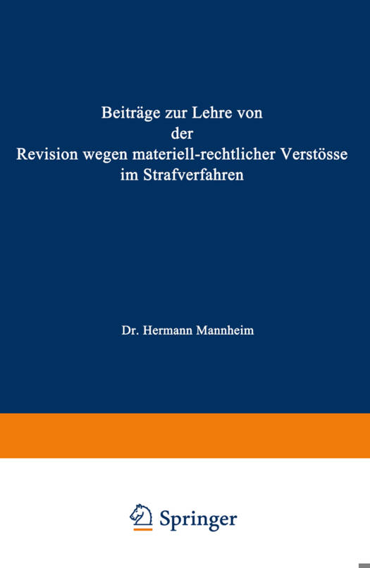 Beiträge Zur Lehre Von Der Revision Wegen Materiellrechtlicher Verstösse Im Strafverfahren