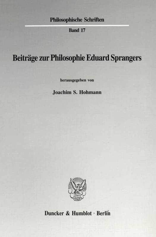 Eduard Spranger, einer der Wegbereiter und Hauptvertreter der geisteswissenschaftlichen Pädagogik in Deutschland, verstand sich zurecht in erster Linie als Philosoph. Philosophie war für ihn der Schlüssel zur Pädagogik und Psychologie - Disziplinen, die er während seines ertragreichen Schaffens in Berlin und Tübingen richtungweisend vertrat. Erstmals wird hier versucht, das philosophische Denken des Gelehrten nach seinen Wurzeln und in seiner Eigenständigkeit zu erfassen. Die Hauptwerke Eduard Sprangers werden aus heutiger Sicht betrachtet und in geistesgeschichtlichen Zusammenhängen gesehen, wobei die Bereiche Kulturpädagogik und Wertphilosophie in besonderer Weise untersucht werden. Dabei zeigt sich, daß das »Ergriffensein vom Geiste her« auch in unserer Zeit Belang und Wirkung haben kann. Forschungsprojekte, die das Denken Eduard Sprangers zum Gegenstand haben, zeigen, daß seine geistige Hinterlassenschaft Alternativen zu gängigen philosophischen und pädagogischen Lehren enthält.