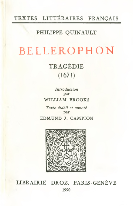Bellérophon, seizième pièce de Quinault, marque l'apogée de sa carrière propement théâtrale ; ensuite, il écrira surtout pour les musiciens. Comme l'écrit Étienne Gros - et la chose est vraie surtout dans Bellérophon - : "C'est dans le théâtre de Quinault que l'amour prend son sens véritable ; c'est chez Quinault qu'il se 'désintellectualise', qu'il tend à devenir la passion irraisonnée et irréfléchie, la passion meurtrit, qui subjugue et qui tue". Et Racine, dans Phèdre, s'est inspiré de Bellérophon.