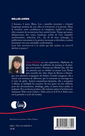 2 femmes, 4 murs. Bleus. Les jumelles inversées s'étaient longtemps perdues de vue, elles se retrouvent, à la piscine. Dans le vestiaire, entre confidences et complexes, nudité et rivalité, elles essayent de reconstruire leur amitié brisée. Temps qui passe, déliquescence des corps, handicap, utilité de l'art, séquelles sentimentales, séduction 2.0... Au fil de leurs échanges, la publicitaire renommée et la peintre inconnue se dévoilent, coulant lentement vers une inévitable confrontation. Leur lien survivra-t-il à la vérité qui fait surface ou sera-t-il déchiré à jamais ?