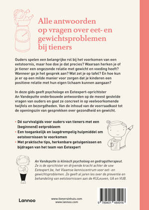 Ouders spelen een belangrijke rol bij het voorkomen van een eetstoornis, maar hoe doe je dat precies? Waaraan herken je of je tiener een ongezonde relatie met gewicht en voeding heeft? Wanneer ga je het gesprek aan? Wat zet je op tafel? En hoe kun je er op een milde manier voor zorgen dat je kinderen een positieve relatie met hun eigen lichaam kunnen aangaan? In deze gids geeft psychologe en Eetexpert-oprichtster An Vandeputte onderbouwde antwoorden op de meest gestelde vragen van ouders en gaat ze concreet in op veelvoorkomende twijfels en bezorgdheden. Van de inhoud van de voorraadkast tot de openingszin van gesprekken over gezondheid en gewicht.