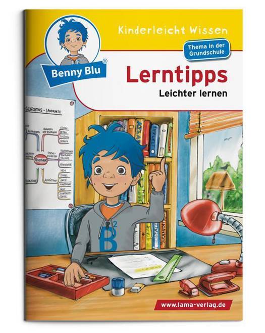 Lust auf Lernen. Benny Blu gibt dir tolle Lerntipps. Warum solltest du lernen? Wie macht Lernen richtig Spaß? Was ist eine Eselsbrücke? Wo lernst du am besten? Und wozu dient eine "Gedächtnis-Landkarte"? Benny Blu Lernbuch, Format DIN A6, 32 Seiten, geheftet, 4/4 farbig