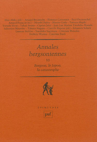Le présent volume, qui marque les dix ans des Annales bergsoniennes, constitue un numéro spécial, organisé autour du colloque international « Bergson et le désastre. Lire Les deux sources de la morale et de la religion au Japon aujourd’hui » qui s’est tenu à Tokyo, Kyoto et Fukuoka, du 24 au 29 octobre 2011. Le thème de ce colloque, inscrit dans le cadre du Projet Bergson au Japon, sur L’évolution créatrice, puis sur Les deux sources de la morale et de la religion, a été pour ainsi dire dicté par les événements tragiques survenus à Sendaï et à Fukushima le 11 mars 2011, et dont nous n’avons vraisemblablement pas encore mesuré toutes les conséquences, théoriques et pratiques. Il rejoint par ailleurs une ligne d’interrogation réelle de Bergson encore trop peu aperçue et qui compte parmi les potentialités les plus fécondes et les plus urgentes de cette pensée.