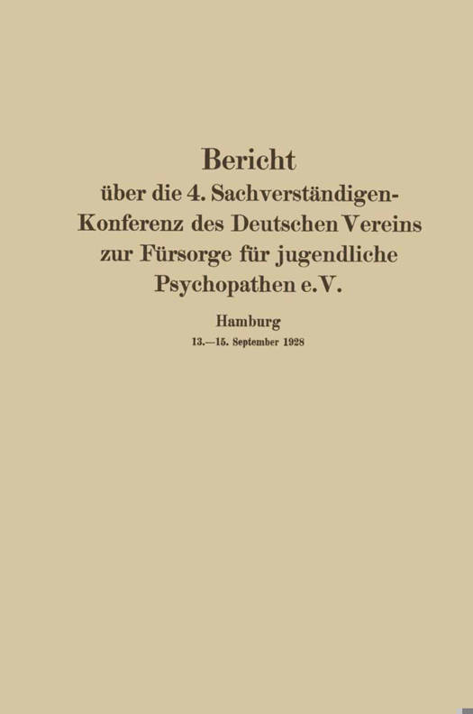 Bericht Über Die 4. Sachverständigen-Konferenz Des Deutschen Vereins Zur Fürsorge Für Jugendliche Psychopathen E.V.