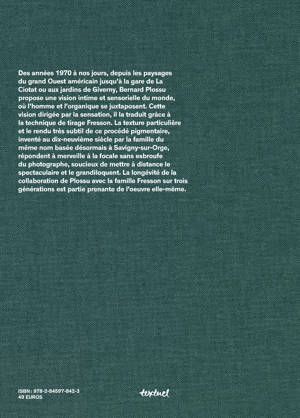 Ce livre est conçu comme la rétrospective de l'oeuvre en couleur de Bernard Plossu sur tirages Fresson : des années 70 à nos jours, depuis les paysages du grand ouest américain à la gare de la Ciotat ou les jardins de Giverny. Quatre-vingt images, dont certaines inédites, sont reproduites dans leur épaisseur et leur matité, chaque tirage Fresson étant unique. La longévité de la collaboration de Plossu avec la famille Fresson sur trois générations est partie prenante de l'oeuvre elle-même.