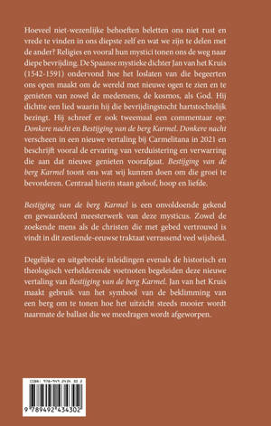 Degelijke en uitgebreide inleidingen evenals de talrijke historisch en theologisch verhelderende voetnoten begeleiden deze nieuwe vertaling van Bestijging van de berg Karmel. Gebruik maken van het symbool van de beklimming van een berg toont hij hoe het uitzicht steeds mooier wordt naarmate de ballast die we meedragen afgeworpen wordt.