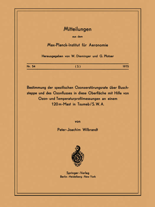 Bestimmung Der Spezifischen Ozonzerstörungsrate Über Buschsteppe Und Des Ozonflusses in Diese Oberfläche Mit Hilfe Von Ozon- Und Temperaturprofilmessungen an Einem 120m-Mast in Tsumeb/ S. W. A.