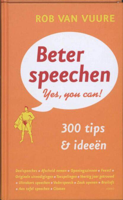 In Beter speechen. Yes, you can! geeft Rob van Vuure honderden tips voor een goede speech. Wat is een pakkende openingszin en wat is een fijne uitsmijter? Waaruit bestaat een goede huwelijksspeech? Hoe speech je met meerdere mensen? Hoe kun je met een gimmick of een ultrakorte toespraak toch heel succesvol zijn? Het staat allemaal in dit handige boekje.