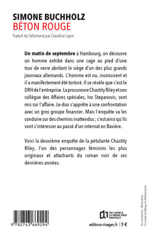 À Hambourg, la procureure Chastity Riley, héroïne de Nuit bleue, se trouve confrontée à un crime hors norme : un homme torturé enfermé dans une cage en pleine ville. Une héroïne drôle et politiquement incorrecte qui emporte l'adhésion.Un microcosme de personnages (Ivo des Affaires spéciales, Faller, l'ex commissaire, Klatsche, le taulard devenu tenancier de bar...) pittoresques, excentriques et attachants. Une intrigue construite avec brio, comme un puzzle, en courts chapitres. Une langue originale, décalée et inventive, en particulier dans les dialogues. Une peinture très réussie de la ville de Hambourg et de la Bavière. Un livre sombre mais relevé par des touches d'humour et de fantaisie.