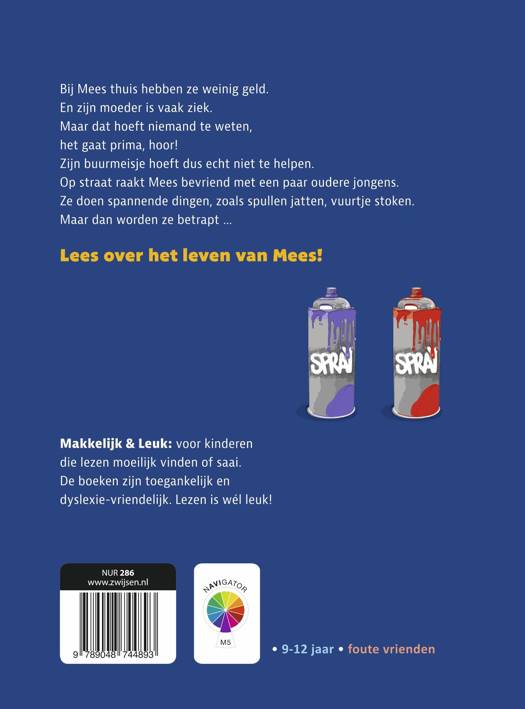 Dit spannende boek gaat over foute vrienden en wat er dan allemaal mis kan gaan. Het is op AVI M5 en voor kinderen van 9-12 jaar. De serie ‘Makkelijk & Leuk’ is voor kinderen die lezen moeilijk vinden of saai. Zo krijgen kinderen weer plezier in lezen. Dyslexievriendelijk!