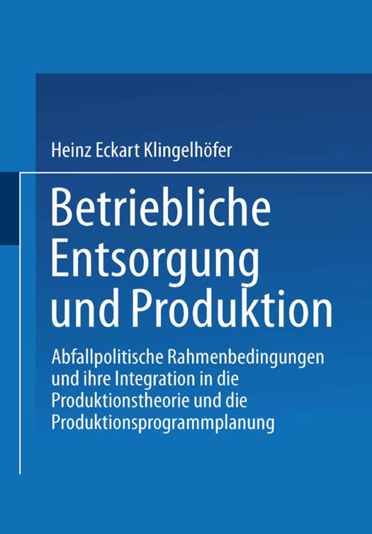 Heinz Eckart Klingelhöfer untersucht die einzelwirtschaftliche Anpassung an die gegebenen und möglichen Instrumente zur Durchsetzung abfallpolitischer Zielvorstellungen aus dem Blickwinkel der Produktionstheorie und der Produktionsprogrammplanung.