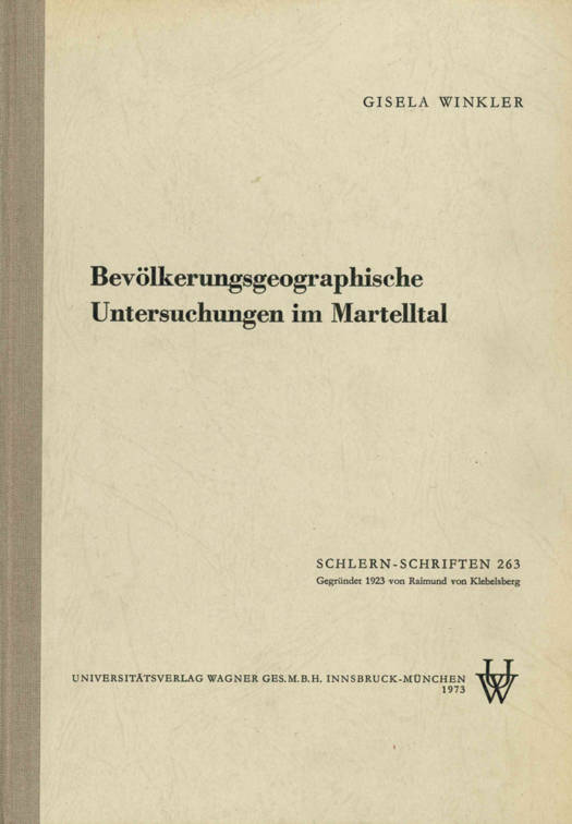 In der rund tausend Einwohner zählenden Gemeinde Martell, einer klar umgrenzten Talschaft des mittleren Vinschgaus, hat die Verfasserin etwa 19.000 Eintragungen über Heiraten, Geburten und Sterbefälle aus den Kirchenbüchern in eine genealogische Reihung gebracht, die sich von der ersten Hälfte des 17. Jahrhunderts bis in die Gegenwart spannt. Diese Quelle bildet die Grundlage für die statistischen Untersuchungen: Die Entwicklung von Eheschließungen, Geburten und Sterblichkeit wird eingehend dargestellt, ihre jahreszeitliche Verteilung aufgeschlüsselt. Ein eigener Abschnitt gilt den Heiratskreisen und der Binnenwanderung. Das Martelltal ist durch diese Arbeit zu einer bevölkerungsgeographisch besonders detailliert untersuchten Talschaft im Alpenraum geworden