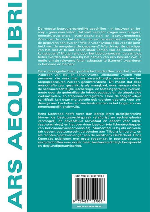 Deze monografie biedt praktische handvatten voor het beantwoorden van die, en aanverwante, alledaagse vragen voor personen die vaak met bestuursrechtelijke bezwaar- en beroepsprocedures worden geconfronteerd. Dit maakt dat deze monografie zeer geschikt is als vraagbaak voor mensen die in de bestuursrechtelijke uitvoerings- en toetsingspraktijk werken, mede door de gedetailleerde inhoudsopgave en de uitgebreide wetsartikelen- en trefwoordenregisters. Door de toegankelijke schrijfstijl kan deze monografie ook worden gebruikt voor onderwijs aan bachelor- en masterstudenten in het hoger en wetenschappelijk onderwijs.