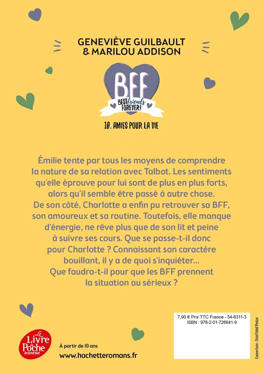 Émilie tente par tous les moyens de comprendre la nature de sa relation avec Talbot. Les sentiments qu’elle éprouve pour lui sont de plus en plus forts… alors qu’il semble être passé à autre chose. Heureusement, l’arrivée d’un nouveau membre dans la famille lui change un peu les idées. De son côté, Charlotte a enfin pu retrouver sa BFF, son amoureux et sa routine. Toutefois, un fichu mal de gorge l’empêche d’embrasser Sasha. Elle manque d’énergie, ne rêve plus que de son lit et peine à suivre ses cours. Que se passe-t-il avec elle ? Connaissant son caractère bouillant, il y a de quoi s’inquiéter… Que faudra-t-il pour que les BFF prennent la situation au sérieux ?