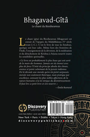 Ce livre est probablement le plus beau qui soit sorti de la main des hommes. Jamais on n'a énoncé avec plus de force l'Unité du principe absolu des choses, essence et point culminant de la pensée indienne. De là découle une morale qu'on n'a point surpassée, morale non seulement théorique, mais pratique par excellence, unissant les plus nobles affections de la nature humaine à la loi stoïque du désintéressement. Il faut lire ce petit livre et s'en nourrir. -Émile Burnouf