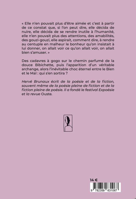 « Elle n’en pouvait plus d’être aimée et c’est à partir de ce constat que, si l’on peut dire, elle décida de nuire, elle décida de se rendre inutile à l’humanité, elle n’en pouvait plus des attentions, des amabilités, des gouzi-gouzi, elle aspirait, comment dire, à rendre au centuple en malheur le bonheur qu’on insistait à lui donner, on allait voir ce qu’on allait voir, on allait bien s’amuser. » <br /> Des cadavres à gogo sur le chemin parfumé de la douce Bibichette, puis l’apparition d’un véritable archange, alors l’inévitable choc éternel entre le Bien et le Mal : qui s’en sortira ? Livre loufoque et plein d'humour noir qui joue sur l'image sociale : comment une si jolie fille peut-elle être aussi monstrueuse?
