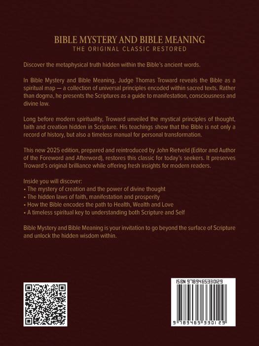 First published in 1913, Bible Mystery and Bible Meaning explores the Scriptures not as dogma, but as a profound metaphysical code. Judge Troward uncovers the hidden spiritual laws within the Bible and shows how they apply to health, wealth, love, and the conscious creation of life. His groundbreaking insights influenced modern teachers such as Napoleon Hill, Ernest Holmes, and Rhonda Byrne, and continue to inspire seekers around the world.
