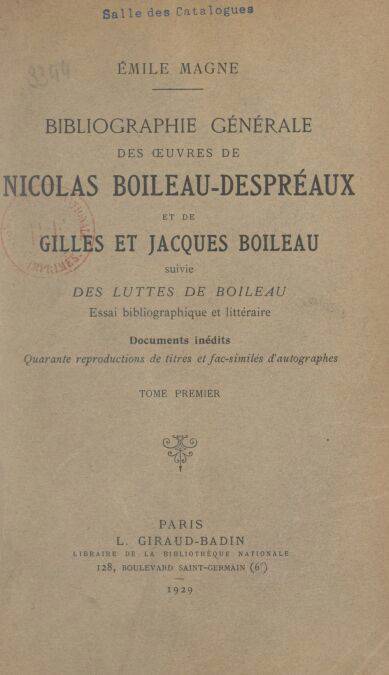5. Bibliographie générale des œuvres de Nicolas Boileau-Despréaux et de Gilles et Jacques Boileau (1)