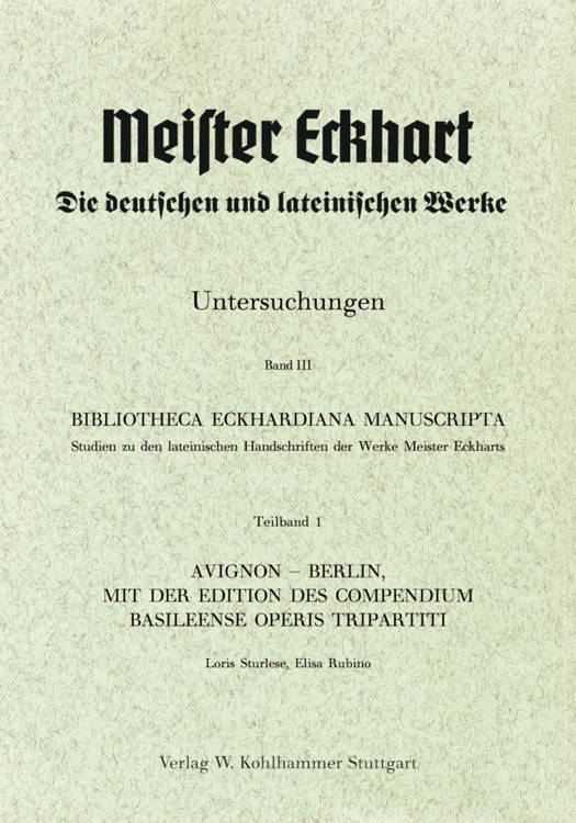 Studien Zu Den Lateinischen Handschriften Der Werke Meister Eckharts. Teilband 1: Avignon - Berlin, Mit Der Edition Des Compendium Basileense Operis Tripartiti