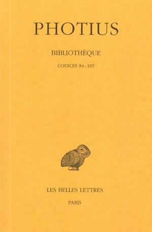 84 Denys d'Halicarnasse, 85 Héraclianus, 86 Jean Chrysostome, 87 Achille Tatius, 88 Synode de Nicée, 89 Préface à Eusèbe, 90 Libanius, 91-93 Arrien, 94 Jamblique, 95 Jean de Scythopolis, 96 Georges d’Alexandrie, 97 Phlégon, 98 Zosime, 99 Hérodien, 100 Hadrien, 101 Victorinus, 102 Gélase, 103-105 Philon, 106 Théognoste, 107 Basile, 108 Théodore, 109-111 Clément d’Alexandrie, 112-113, Clément de Rome, 114 Leucius Charinus, 115 Contre les Juifs. Métrodore, 116 Sur la fête de Pâques, 117 Pour Origène, 118 Pamphile et Eusèbe, 119 Piérius, 120 Irénée de Lyon, 121 Hippolyte, 122-124 Epiphane, 125 Justin, 126 Clément, 127 Eusèbe, 128 Lucien, 129 Lucius de Patras, 130 Damascius, 131 Amyntianus, 132-135 Palladius, 136 Cyrille, 137-138 Eunomius139-140 Athanase, 141-143 Basile, 144-145 Helladius, 146-148 Lexiques, 149 Pollion, 150 Julien, 151 Timée, 152 Elius Denys, 153 Pausanias, 154 Boethos, 155-156 Lexiques, 157 Moeris, 158 Phrynichos, 159 Isocrate, 160 Choricius, 161 Sopatros, 162 Eusèbe, 163 Vindanius, 164 Galien, 165 Himérius, 166 Antoine Diogène, 167 Stobée, 168 Basile, 169 Cyrille, 170 Préchristianisme, 171 Eustrate, 172-174 Jean Chrysostome, 175 Pamphila, 176 Théopompe, 177 Théodore d’Antioche, 178 Dioscoride, 179 Agapius, 180 Jean Lydus, 181 Damascius, 182 Eulogius, 183-184 Eudocie, 185 Denys d’Egée