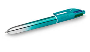 BIC 4 Couleurs Smooth Stylos-Bille Rétractables à Pointe Moyenne (1 mm) avec Corps bleu-vert dégradé.