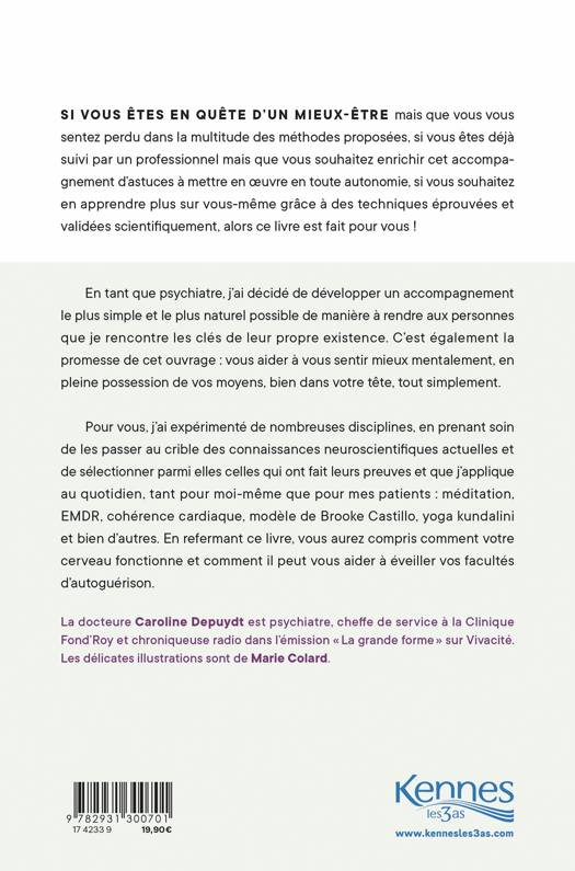 Si vous êtes en quête d’un mieux-être, mais que vous êtes perdu dans la multitude des méthodes actuellement proposées, si vous êtes déjà suivi par un professionnel mais que vous souhaitez enrichir cet accompagnement d’astuces que vous pouvez mettre en œuvre en toute autonomie, si vous souhaitez en apprendre plus sur vous-même et développer vos propres capacités d’auto-guérison grâce à des techniques éprouvées, approuvées et validées scientifiquement, alors ce livre est fait pour vous. En tant qu’être humain en quête de croissance, mais aussi comme médecin psychiatre, j’ai décidé de développer un accompagnement le plus simple et le plus naturel possible, de manière à rendre aux personnes que je rencontre les clés de leur propre existence et le pouvoir de changer les choses par elles-mêmes si elles le désirent. C’est également la promesse de cet ouvrage : vous aider à vous sentir mieux mentalement, en pleine possession de vos moyens, et ainsi devenir la meilleure version de vous-même.