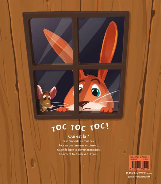 Sylvain le lapin attend une invitée pour le déjeuner. TOC TOC TOC ! « Vas-y,entre, Edmonde, bienvenue chez moi ! ». Petit problème, ce n'est pas Edmonde qui passe le seuil de la porte mais Pierrot... le loup. Et Pierrot aimerait bien dévorer Lapin. Pour sauver sa peau, place à l'improvisation, et ça, Lapin sait très bien le faire, il noie le loup sous un flot de paroles, à tel point que ce dernier est coupé dans son élan. Tout cela finira-t-il très mal ? Lapin sera-t-il croqué ? Une histoire loufoque pleine de rebondissements et une chute mémorable.