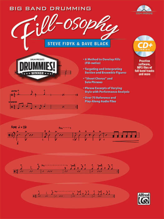 The winner of the Drummies! 2014 Best Drumming Book Award, Big Band Drumming Fill-osophy, offers a comprehensive approach to playing and interpreting fills in a big band setting. With advice on how to interpret section and ensemble figures, Steve Fidyk and Dave Black give detailed information that will strengthen the drummer's ability to recognize one-, two-, and four-bar section/ensemble figures quickly and easily. The companion MP3 CD contains over 75 reference and play-along examples extracted from real drum charts. They have been looped or repeated for thorough study. Big Band Drumming Fill-osophy will prove to be an invaluable tool in helping to interpret and play big band drum fills.
