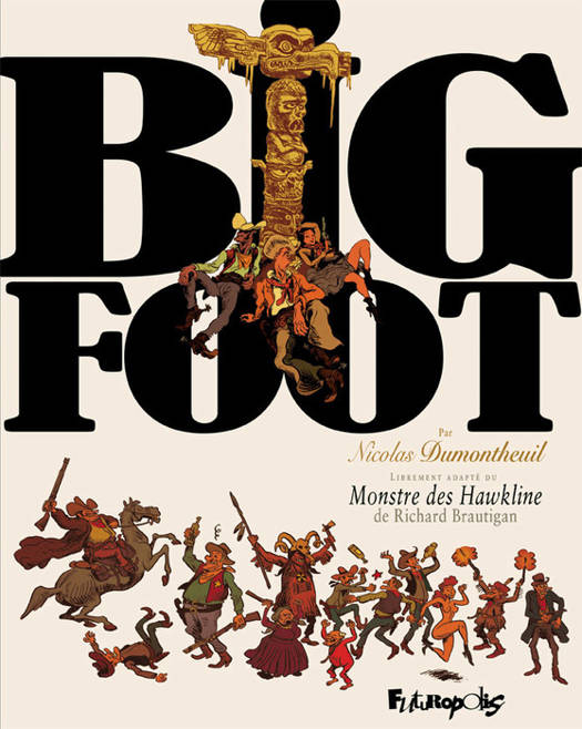 Avant La Forêt des renards pendus, Nicolas Dumontheuil a adapté librement Le Monstre des Hawkline de Richard Brautigan. Il rend ainsi hommage aux personnages et à l'humour de Richard Brautigan qui avait écrit ce roman pour "faire marrer" ses copains du Montana. Nicolas Dumontheuil a relevé haut la main ce défi et signe un western loufoque particulièrement jubilatoire ! Paru initialement en 3 tomes, Big Foot paraît enfin en version intégrale !