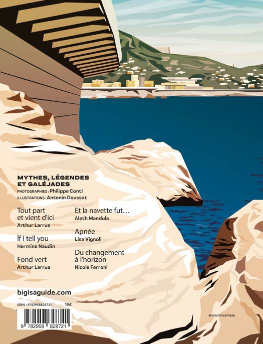 Pour cette nouvelle édition, le numéro de BIG - Marseille sera consacré à la mer et au littoral Marseillais à l'occasion des Jeux Olympiques.- LE GUIDEA l’occasion des J.O nous avons souhaité éditer un numéro consacré au littoral de Marseille. C’est à travers une carte qui se déroule sur un axe Nord-Sud que nous découvrons la ville. Cette découverte est ponctué de récit se référant à certain mythes et légendes fondateur de l’histoire de Marseille.Nous présenterons dans cette partie de BIG une sélection d'adresses situées le long du littoral marseillais.Les lecteurs pourront découvrir ces différents lieux à partir d'une carte de la côte et ils pourront ainsi partir à leur découverte.- LA REVUELe titre "GALÉJADE" reflète l'humeur générale de la revue dans laquelle nous pourrons lire des textes qui, toujours en lien avec la mer, seront tirés de faits réels, histoires romanesques ou simplement exagérées à laquelle on essaie de faire croire. La revue sera ainsi ponctuée de cinq ou six très courtes nouvelles qui chacune racontera au travers d'un quartier ou d'un personnage un conte moderne de la ville.Par ailleurs, nous aurons également deux nouvelles plus conséquentes.- Arthur Larrue nous livre pour l'instant les éléments suivants : "Les lieux ont des mémoires, leurs visiteurs les ravivent. On est au Frioul, un homme entre deux âges marche vers l'hôpital Caroline..."- Hermine Naudin nous raconte comment Edmond Dantès est devenu au delà d'une légende, un personnage vénéré, considéré comme un personnage historique en Chine et à Taïwan, tant et si bien qu'il n'est pas rare que certaine famille fassent le déplacement et louent les services d'une compagnie maritime funéraire afin de disperser les cendres de leurs défunt au large du château d'If...