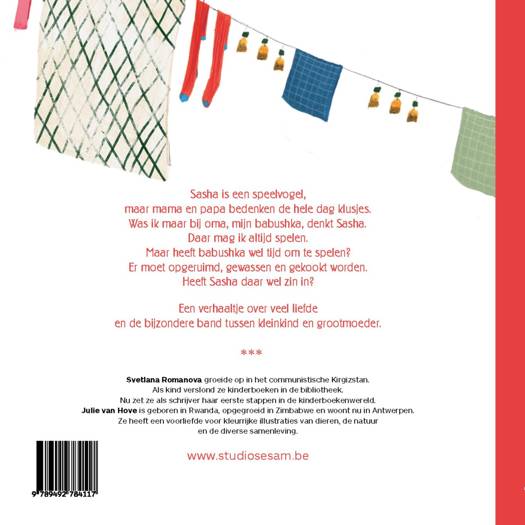 Sasha is een speelvogel, maar mama en papa bedenken de hele dag klusjes. Was ik maar bij oma, mijn babushka, denkt Sasha. Daar mag ik altijd spelen. Heeft Sasha gelijk? Want bij babushka moet er worden opgeruimd, gewassen en gekookt. Maar bij babushka is klusjes doen héél wat anders dan thuis.