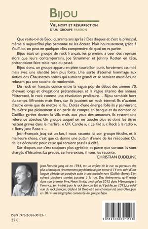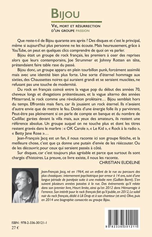 Que reste-t-il de Bijou quarante ans après? Des disques et c'est le principal. Ce groupe de rock français fut le premier à oser des reprises alors que leurs contemporains, Joe Strummer et Johnny Rotten en tête prétendaient faire table rase du passé. Du rock en français coincé entre la vague pop du début des années 70 et la vague alterno des années Mitterrand, le rock comme révolution prolétarienne. Jean-François Jacq est un fan qui nous conte l'histoire d'un groupe effronté mais fier, jouant un rock éternel.