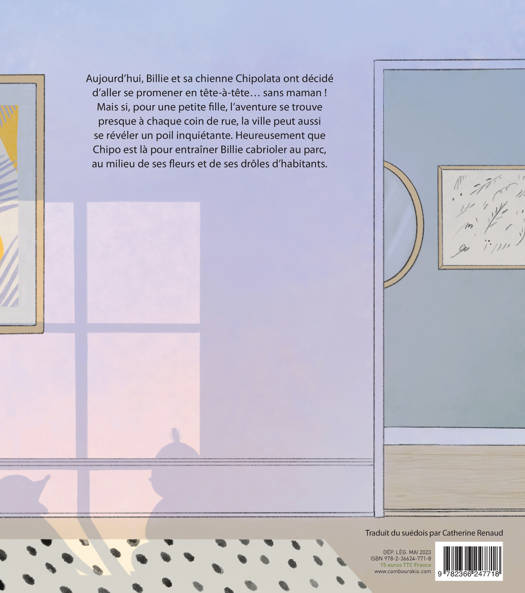 Aujourd'hui, Billie et sa chienne Chipolata ont décidé d'aller se promener en tête-à-tête... sans maman ! Mais si, pour une petite fille, l'aventure se trouve presque à chaque coin de rue, la ville peut aussi se révéler un poil inquiétante. Heureusement que Chipo est là pour entraîner Billie cabrioler au parc, au milieu de ses fleurs et de ses drôles d'habitants.