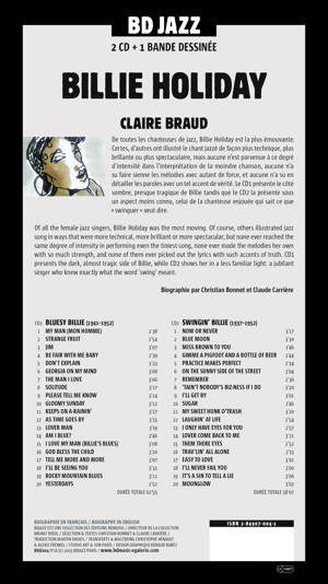 La biographie de Billie Holiday, écrite par Alain Gerber, illustrée par Claire Braud, accompagnée de 2 compacts discs. BILLIE HOLIDAY <br /><br /> De toutes les chanteuses de jazz, Billie Holiday est la plus émouvante. Certes, d’autres ont illustré le chant jazzé de façon plus technique, plus brillante ou plus spectaculaire, mais aucune n’est parvenue à ce degré d‘intensité dans l’interprétation de la moindre chanson, aucune n’a su faire sienne les mélodies avec autant de force, et aucune n’a su en détailler les paroles avec un tel accent de vérité. Le CD1 présente le côté sombre, presque tragique de Billie tandis que le CD2 la présente sous un aspect moins connu, celui de la chanteuse enjouée qui sait ce que « swinguer » veut dire. <br /><br />