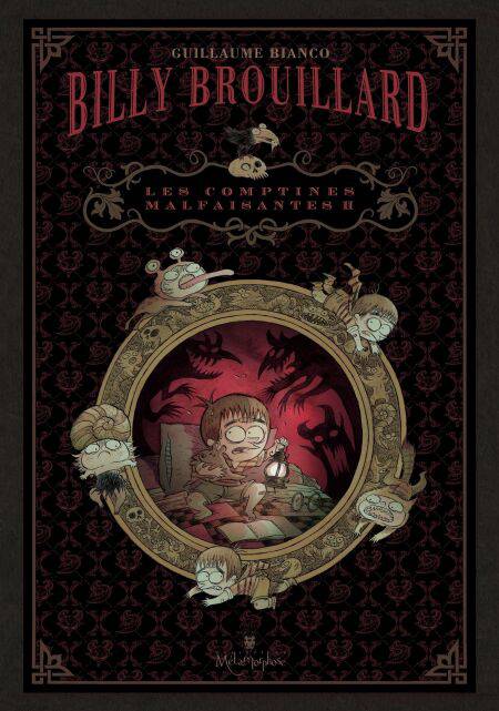 Fantaisistes et angoissantes, quatre nouvelles "comptines malfaisantes' aujourd'hui dévoilées dans ce second coffret ! Rangées sur l'étagère de Billy Brouillard, les comptines malfaisantes sont au nombre de treize. Leurs origines demeurent mystérieuses, mais certains prétendent qu'elles auraient été écrites par le Diable lui-même afin de punir les enfants dissipés. Quatre d'entre elles ont déjà été retranscrites, quatre nouvelles le sont aujourd'hui : – Vous brûlerez d'épouvante en découvrant Ezilda, le lézard géant qui suit les enfants comme leur ombre sans raison apparente... – Plus jamais vous ne vous endormirez dans le noir après avoir lu la sinistre histoire du Nez qui dépasse... – Si vous survivez à la lecture d'Angoisses nocturnes, vos cauchemars auront une saveur âpre... – Et enfin, vous en saurez un peu plus sur le terrifiant Monsieur du Sac qui effraie tant Billy... Prenez gare... Comme certains contes populaires, la morale de ces comptines peut s'avérer dure, ironique, souvent cruelle... mais toujours surprenante.