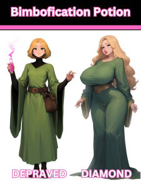 Claire, a petite and ambitious blonde initiate, finds herself under the watchful eye of her cute mentor Ethan. When she brews a powerful aphrodisiac in secret, the potion surprises her with its additional properties that transform her into a perfect bimbo from head to toe. With every inch of her transformed into the perfect bimbo, she's left aching for Ethan to find her hot and ready. A risk or an irresistible opportunity?