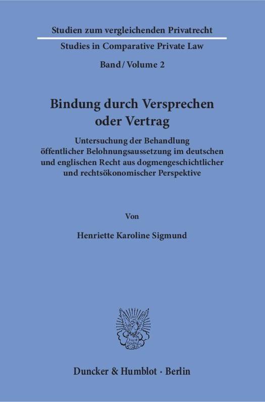 Untersuchung Der Behandlung Offentlicher Belohnungsaussetzung Im Deutschen Und Englischen Recht Aus Dogmengeschichtlicher Und Rechtsokonomischer Perspektive