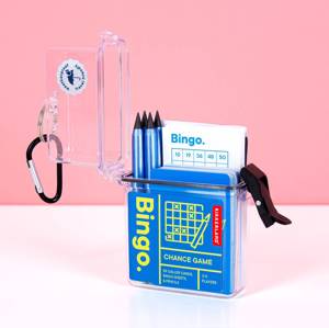 Emportez ce jeu de hasard classique partout avec vous ! Comprend 59 cartes d'appel, 50 feuilles de bingo, 4 crayons à mine et un mode d'emploi, le tout dans un étui résistant aux intempéries avec mousqueton porte-clés à accrocher à n'importe quel sac ou sangle. Idéal pour les voyages, le camping et les jeux en extérieur. PC, papier PET, bambou, ABS, PS, TPR, ALU, fer, boîtier en graphite : 3,75 x 4,75 x 1,5.