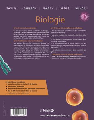 Le Biologie de Raven est reconnu comme une référence incontournable en sciences de la vie et met l'accent sur l'évolution, combinée à une intégration de la biologie cellulaire, moléculaire et de la génomique pour offrir au lecteur un texte à la fois agréable à lire, rigoureux et proposant plus de 4 000 photos, illustrations et tableaux d'une qualité exceptionnelle ; avec cette approche toujours fondée sur l'observation et l'expérimentation. Il part des concepts de base de la biologie dans le but de les relier entre eux avec des cartes mentales pour que les étudiants puissent non seulement apprendre plus facilement mais également développer leur esprit critique.
