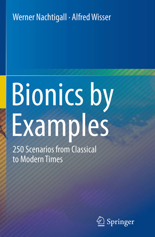 Bionics means learning from the nature for the development of technology. The science of "bionics" itself is classified into several sections, from materials and structures over procedures and processes until evolution and optimization. Not all these areas, or only a few, are really known in the public and also in scientific literature. This includes the Lotus-effect, converted to the contamination-reduction of fassades and the shark-shed-effect, converted to the resistance-reduction of airplanes. However, there are hundreds of highly interesting examples that contain the transformation of principles of the nature into technology. From the large number of these examples, 250 were selected for the present book according to "prehistory", "early-history", "classic" and "modern time". Most examples are new. Every example includes a printed page in a homogeneous arrangement. The examples from the field "modern time" are joint in blocks corresponding to the sub-disciplines of bionics.