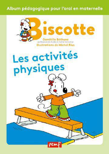 « Biscotte, les activités physiques » est un album pédagogique qui a un objectif langagier principal : apporter des noms et des verbes dans le domaine du développement moteur afin d'inciter les élèves à construire, allonger ou complexifier leurs phrases.