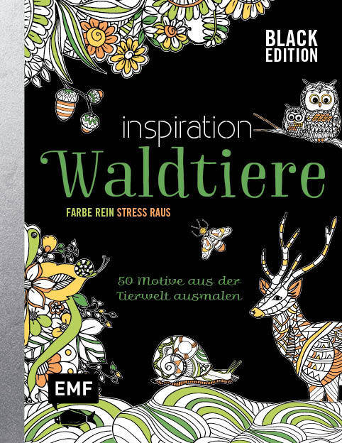 Ausmalen in der Edelklasse - die Black Edition! Das Ausmalbuch erreicht eine neue Dimension! Durch die schwarzen Hintergründe bekommen die Bilder eine ganz neue Brillanz und Fernwirkung, die Farben leuchten noch stärker und machen aus jedem Motiv ein Kunstwerk. Nur fünf Minuten Auszeit können im stressigen Alltag wahre Wunder bewirken. Das minutiöse Kolorieren von zauberhaften Waldmotiven ist die ideale Gelegenheit, den Kopf von Sorgen und Blockaden zu befreien und neue Kraft für die nächste Etappe des Tages zu sammeln.