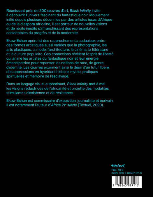 "Black Infinity" propose une plongée inédite dans l'univers fascinant d'un mouvement artistique noir affranchi des représentations occidentales. Ce sont 300 oeuvres d'artistes contemporains importants comme Lina Iris Viktor, Kara Walker ou même Beyonce qui sont présentées ici. Des artistes qui affrontent l'héritage de l'esclavage et les injustice contemporaines par la création de nouveaux récits dans une esthétique mêlant science-fiction, afro-futurisme, spirituel et surnaturel. Un recueil d'oeuvres stimulantes et émancipatrices.