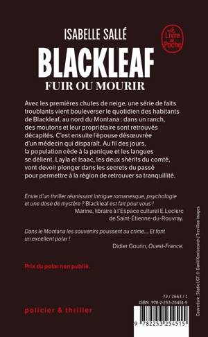 Avec les premières chutes de neige, une série de faits troublants vient bouleverser le quotidien des habitants de Blackleaf, au nord du Montana : dans un ranch, des moutons et leur propriétaire sont retrouvés décapités. C’est ensuite l’épouse désœuvrée d’un médecin qui disparaît. Au fil des jours, la population cède à la panique et les langues se délient. Layla et Isaac, les deux shérifs du comté, vont devoir plonger dans les secrets du passé pour permettre à la région de retrouver sa tranquillité.