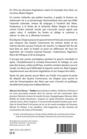 En 1914, les élections législatives voient le triomphe d'un Noir, un inconnu, Blaise Diagne. Ce roman s'attache, par petites touches, à guider le lecteur, en redonnant vie à ce personnage charismatique hors pair qui défie l'autorité coloniale, imbue de préjugés à l'endroit des Noirs. Audacieux, à la limite de la témérité, Blaise Diagne se dresse contre l'ordre colonial raciste qui n'accorde aucun égard aux sujets noirs. Il mobilise les foules et oblige le colonisé à relever la tête et à affronter l'ennemi.