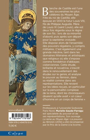 Blanche de Castille est l’une des souveraines les plus célèbres du Moyen Âge. Fille du roi de Castille, elle épouse en 1200 le futur Louis VIII, fi ls de Philippe Auguste. Mère de Louis IX (saint Louis), elle est deux fois régente sous le règne de son fi ls : lors de sa minorité d’abord, puis après son départ pour la septième croisade. Elle dispose alors de l’ensemble des pouvoirs régaliens, y compris militaires. C’est également une grande mécène, tant dans les domaines littéraires et artistiques que religieux où elle s’impose comme fondatrice d’abbayes cisterciennes. Cette étude, brillante et novatrice, s’inscrit dans le renouvellement des études sur le genre, et analyse le pouvoir au féminin, dans sa réalité comme dans ses représentations. Elle revient sur les idées reçues, en particulier sur la personnalité complexe de la reine, dont les chroniqueurs disaient qu’elle avait « un coeur d’homme en un corps de femme »