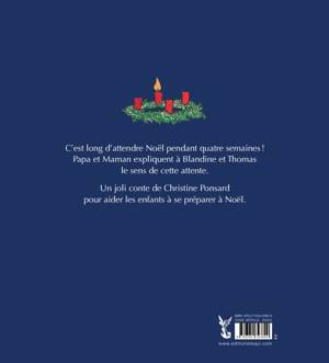 Papa a sorti le carton pour préparer la crèche, Maman a allumé la première bougie de la couronne de l'Avent. Ils expliquent à leurs enfants Blandine et Thomas, avec des mots tout simples, le sens de Noël et de cette longue attente : les quatre semaines de l'Avent, mais qui fut aussi l'attente de tout un peuple pendant des siècles. Un joli conte pour aider les enfants à se préparer à Noël. A propos de l'auteur : La regrettée Christine Ponsard, mariée et mère de 3 enfants adoptés, décédée à 47 ans le 16 février 2004, a collaboré pendant près de 17 ans au magasine Famille Chrétienne comme journaliste et rédactrice en chef des pages religieuses. Elle est également l'auteur de plusieurs ouvrages religieux.