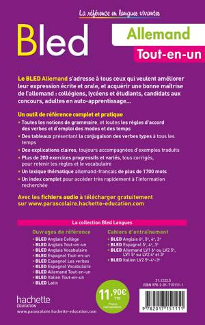 Le BLED Allemand s’adresse à tous ceux qui veulent améliorer leur expression écrite et orale, et acquérir une bonne maîtrise de l’allemand : collégiens, lycéens et étudiants, candidats aux concours, adultes en auto-apprentissage...